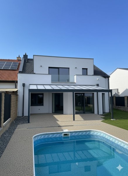 Hliníková pergola s LED podsvícením a integrovaným žlabem